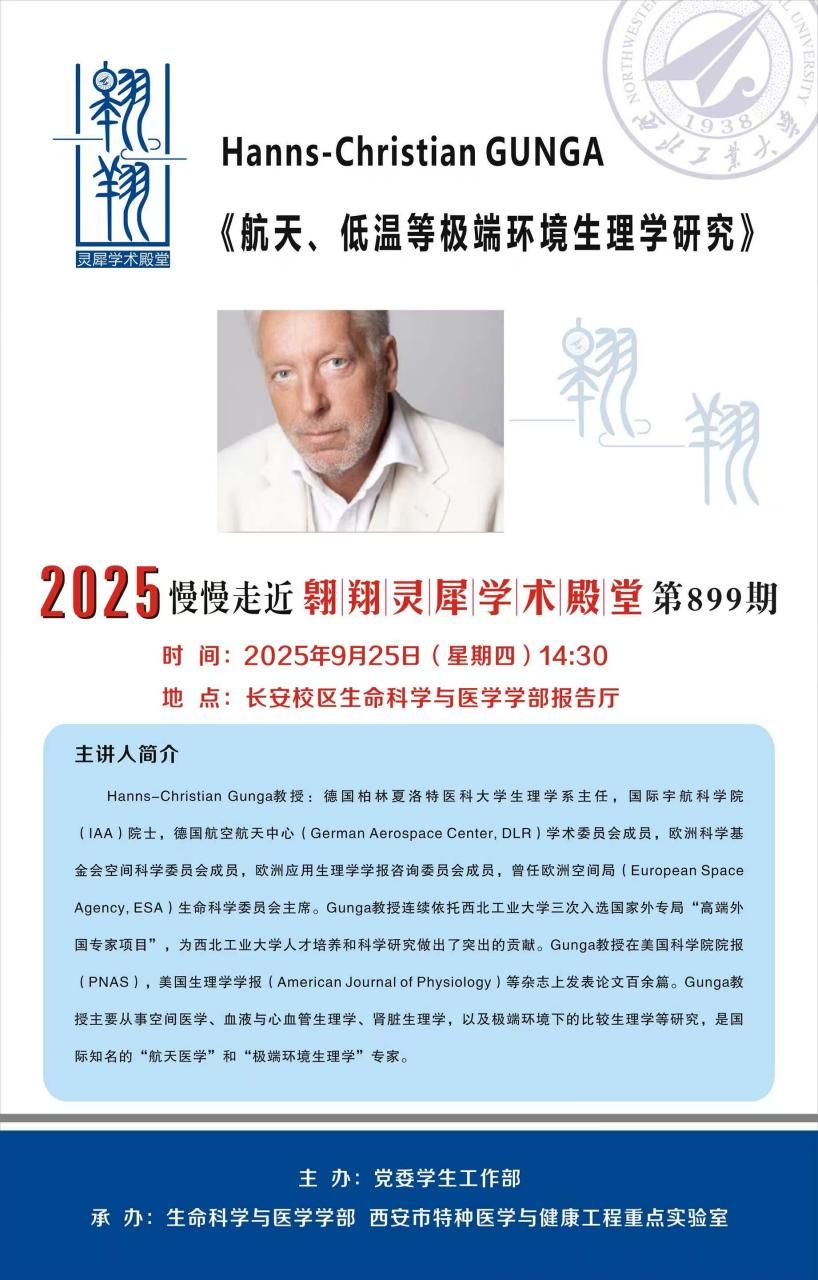 Gunga教授的精彩报告极大增进了师生们对极端环境生理学领域的理解与认识。本次学术报告会有效激发了师生的科研热情,拓宽了学术视野,并为后续研究工作提供了重要的理论启示与实践指导。生命科学与医学学部全体学生将以Gunga教授等优秀学者为楷模,恪守“公诚勇毅”的校训精神,坚定科学信念,勇担科研使命,持续探索前沿科学问题,不断提升创新能力。学部学子必将以扎实的专业素养与不懈的奋斗精神,为推进人类健康事业与生命科学领域的发展积极贡献西工大智慧与力量。