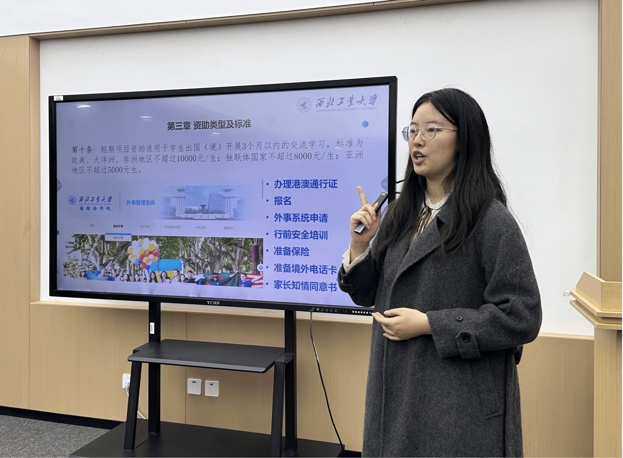 外事秘书陈欢系统介绍了校院两级各类长短期国(境)外交流项目,涵盖项目选择、申请条件、校院支持政策等方面,帮助同学们构建了清晰的认识和规划路径。副教授王雪靖重点推介了学院新拓展的马来西亚拉曼大学寒假交流项目,该项目旨在助力学生拓宽国际视野,提升跨文化交流与实践能力。