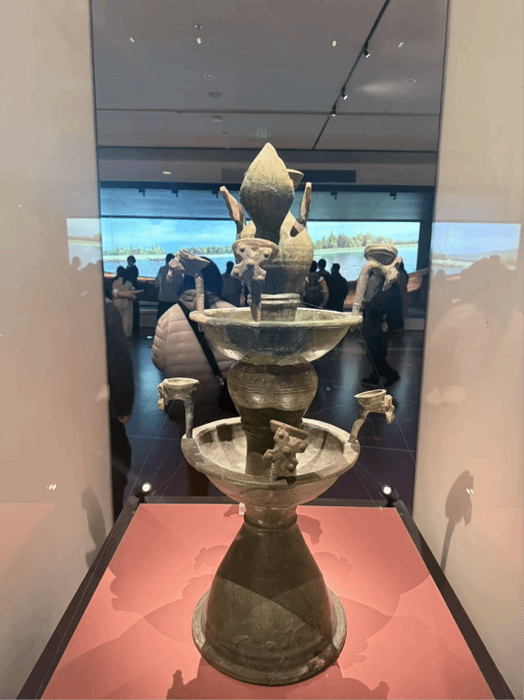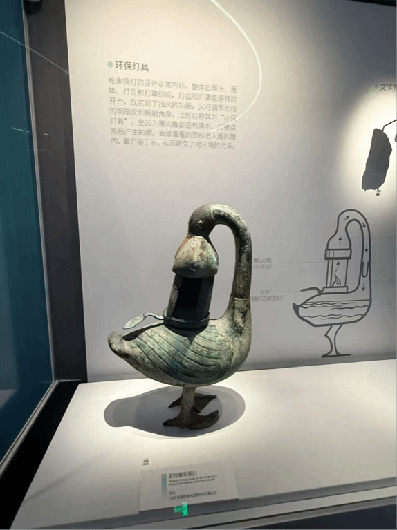 活动伊始,同学们在讲解员的引导下步入展厅。从彩绘雁鱼铜灯蕴含的环保巧思,到多层青铜灯具展现的精湛工艺,每一件文物都生动再现了秦汉时期的生活智慧与美学追求。雁鱼铜灯“烟入雁腹、溶于清水”的环保结构,令同学们惊叹于古人超前的生态理念;而层叠式青铜灯的繁复造型,则彰显出秦汉手工业的高超技艺。