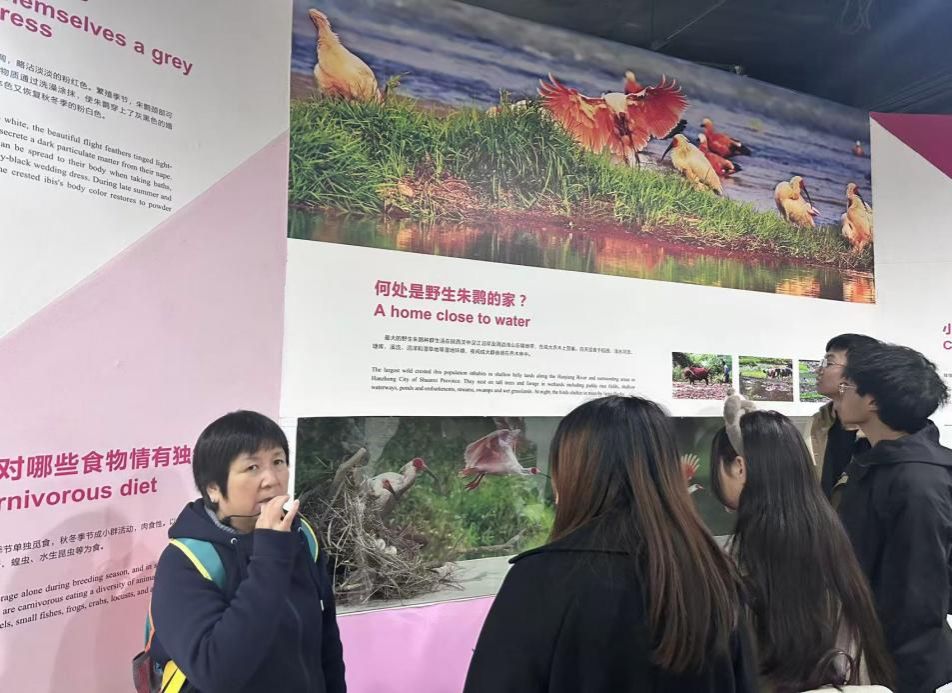 随后,同学们来到朱鹮馆、金丝猴馆与羚牛馆。在朱鹮展区,大家重点关注了这一“东方宝石”的繁殖行为与生态需求;面对活泼好动的金丝猴,同学们观察其社群结构与通讯行为,联系动物行为学理论,思考灵长类动物的进化与适应机制;在羚牛展区,通过了解羚牛的迁徙习性与食性特点,同学们对秦岭山脉的生态承载力、物种间相互作用等问题有了更直观的认知,纷纷感慨秦岭作为“生物基因库”的独特价值。